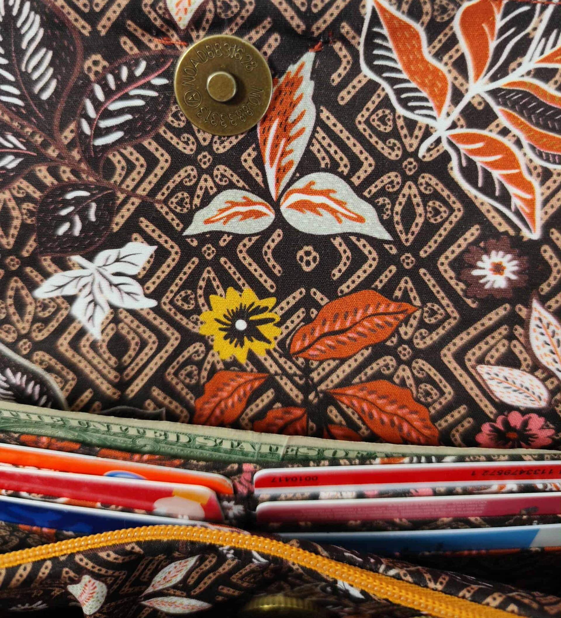 L’intérieur en coton imprimé dans des couleurs chatoyantes, propose de nombreux rangements .