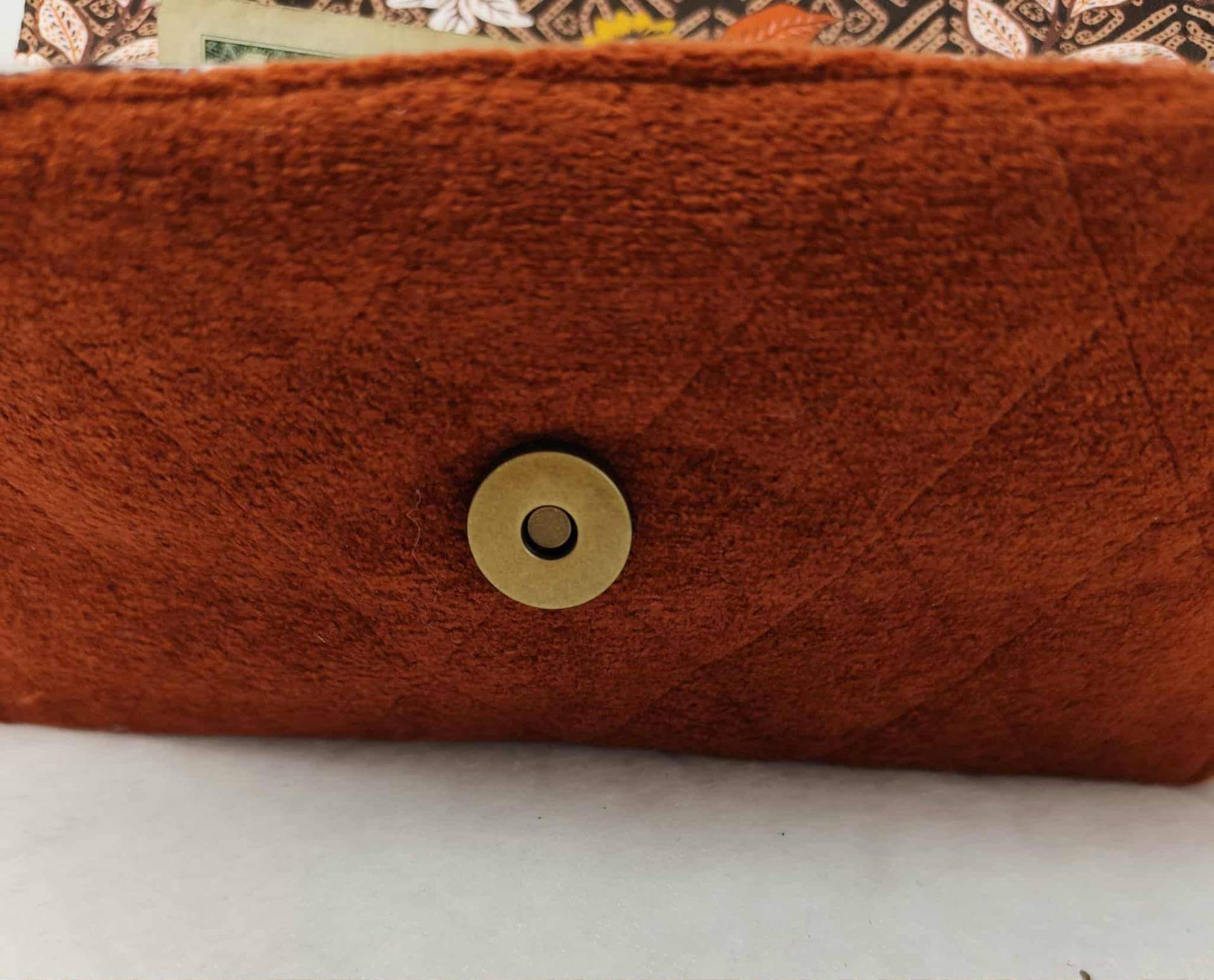 Fermeture du portefeuille par bouton magnétique qui assurant une sécurité.